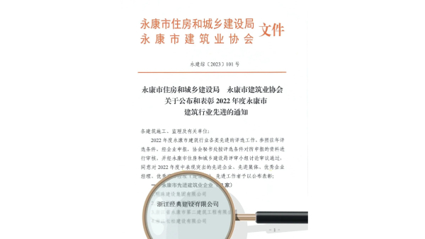喜報!經(jīng)典建設(shè)榮獲“2022年度永康市先進建筑業(yè)企業(yè)”多項榮譽