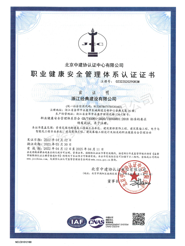 職業(yè)健康安全管理體系認(rèn)證證書...