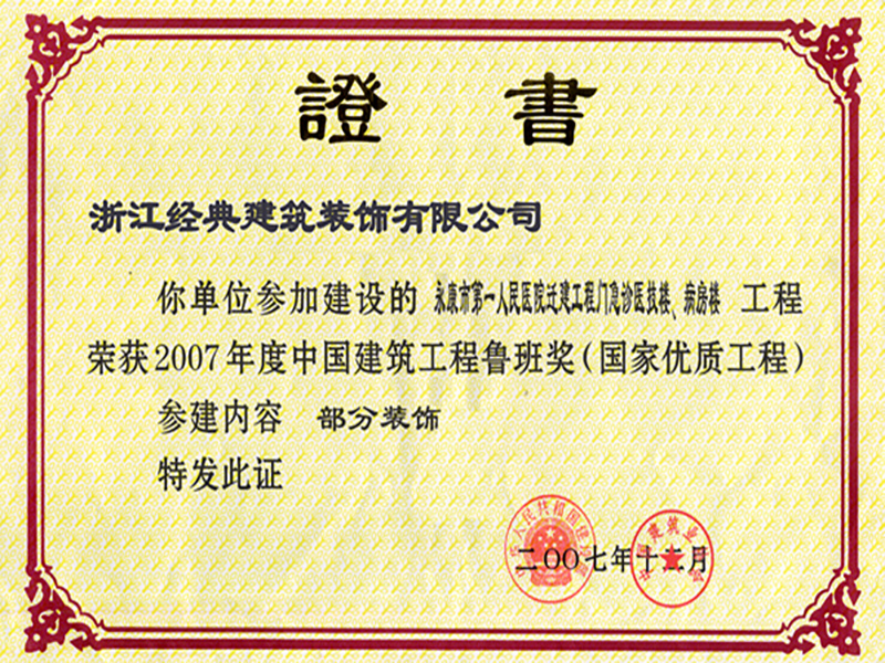2007年第一人民醫(yī)院魯班獎...