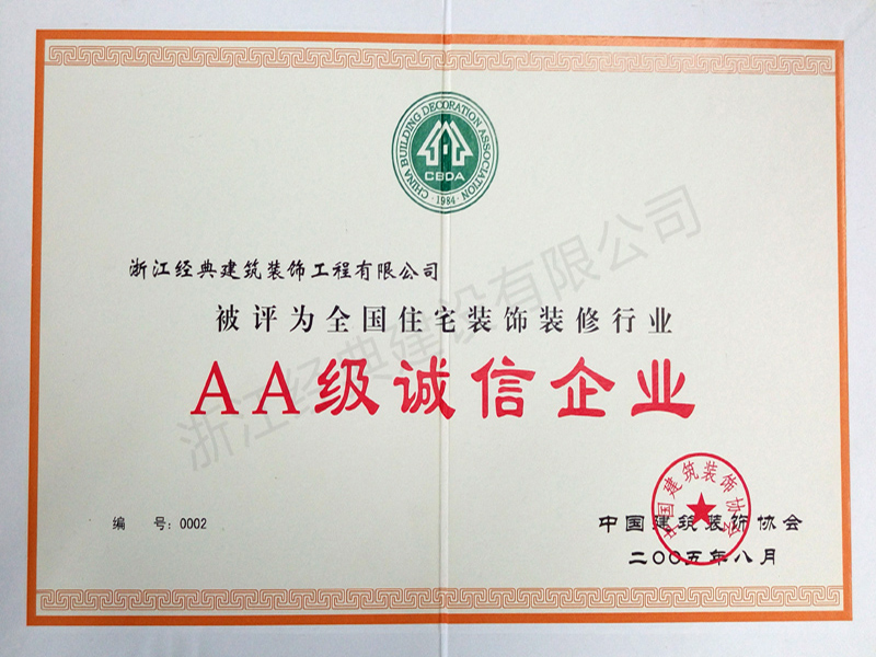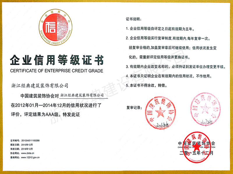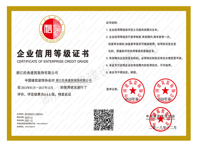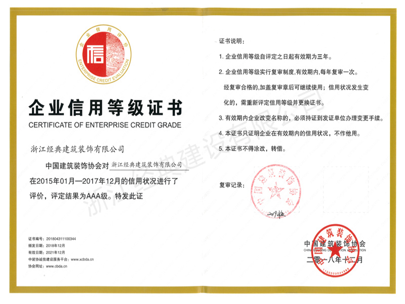 企業(yè)信用等級AAA級(2018...
